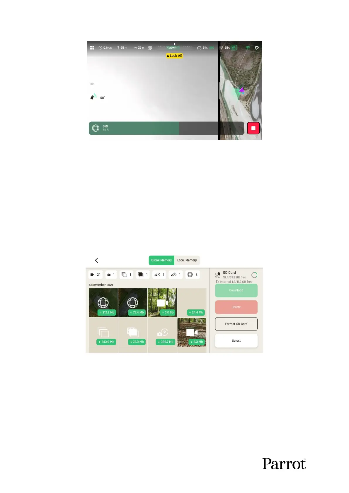 To download the Panorama pictures to your device, land ANAFI Ai. Then, from
