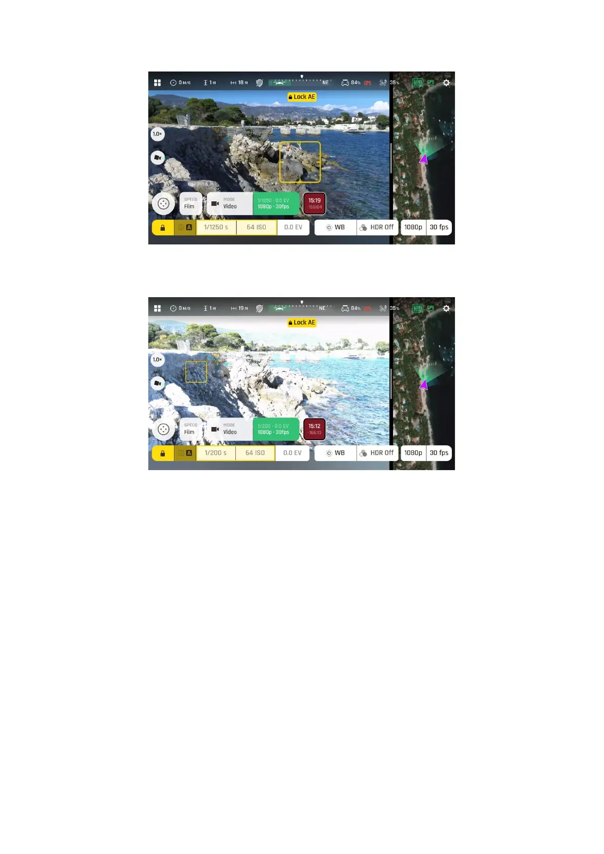 Exposure is locked on a sunny part of the picture: shutter speed is set at 1/1250 s and the image is correctly exposed