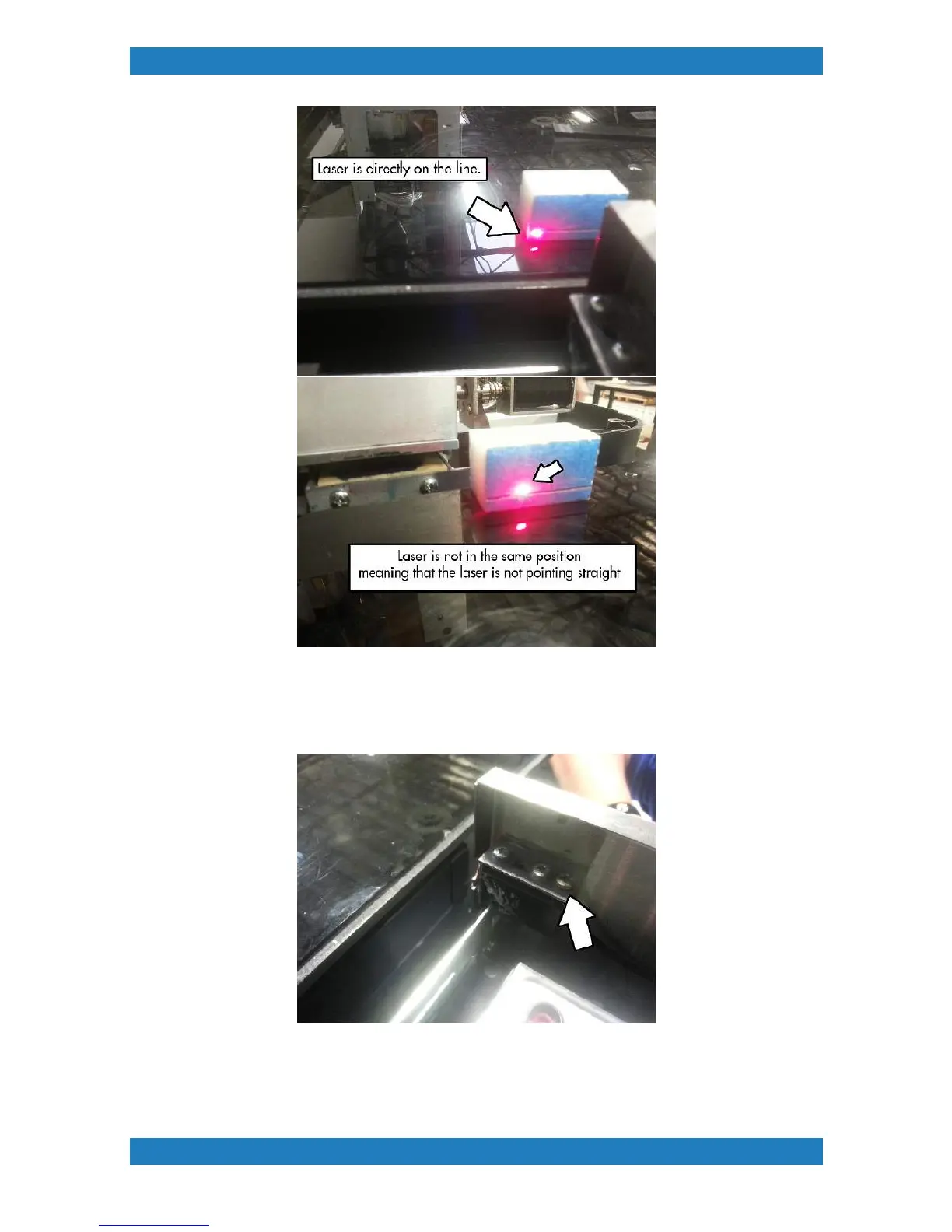 Use the last screw to adjust the laser point. The last screws will allow you to adjust in and up and down