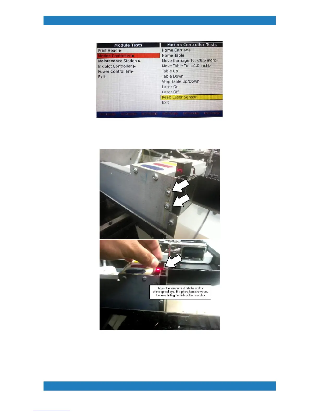 the assembly accordingly. Once you have a set position check the Laser value to make sure its at 1023.