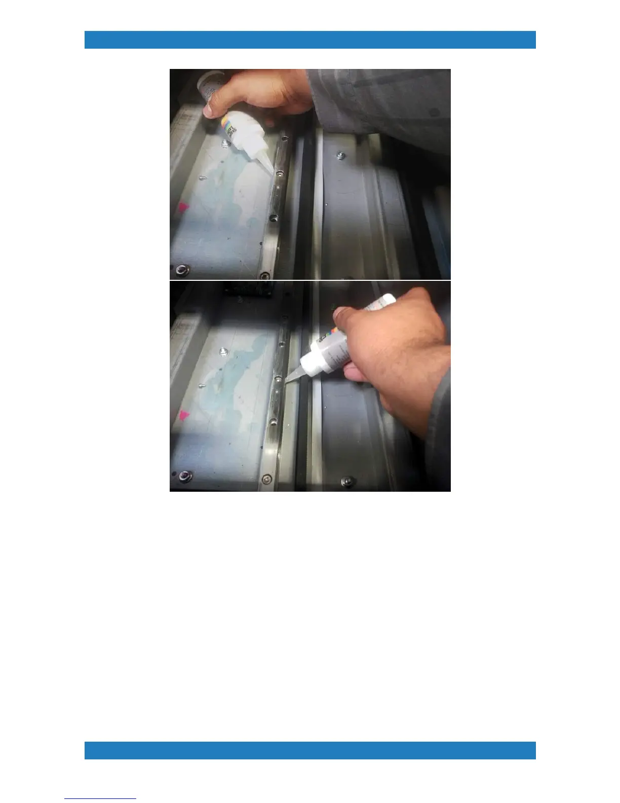 3. Once the lubricant has been applied to the rail exercise the table by pressing the "table" button moving it