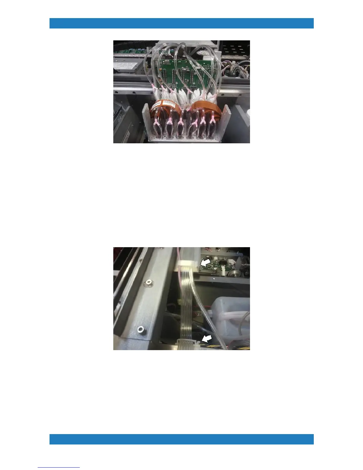 Feed the Print lines and purge lines though the first holding clip. Then follow the print lines only to the second