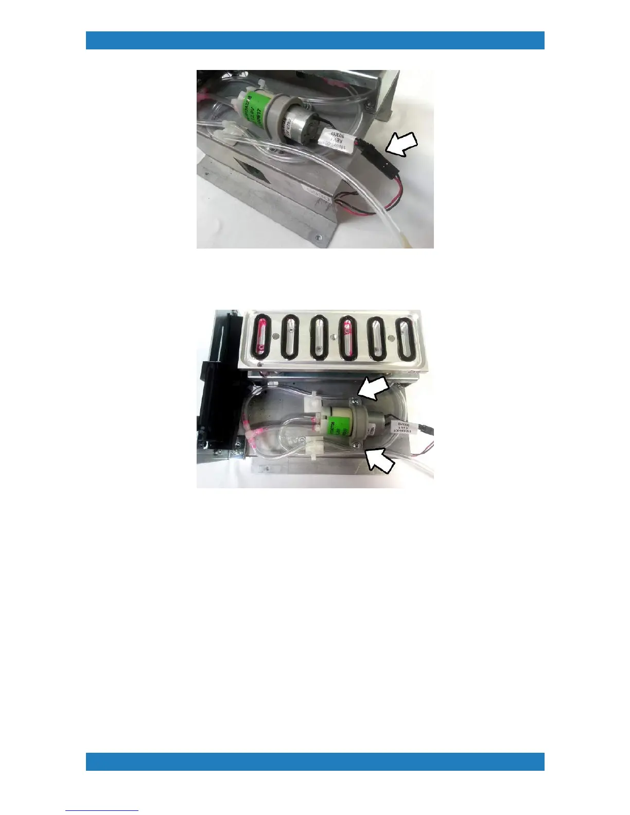 5. The pump will have two tubes connected to it. The middle Tube feeds ink out (to waste tank). While the