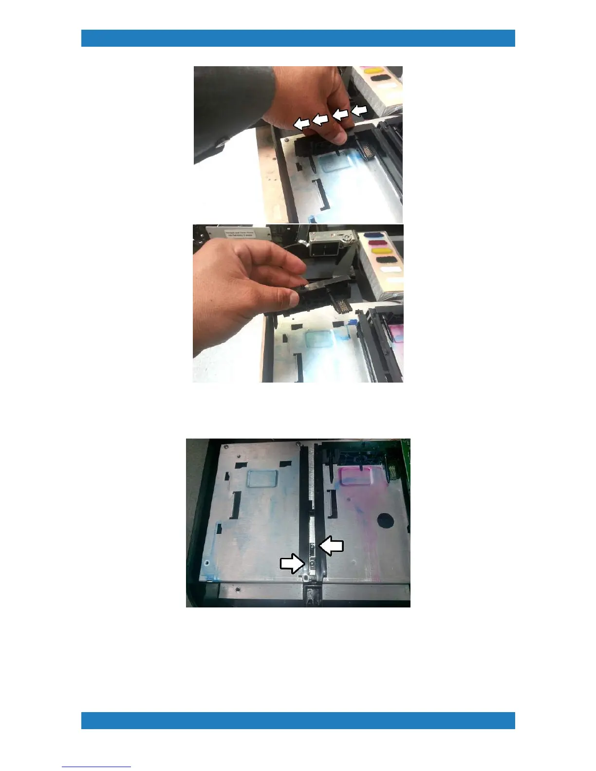 6. When you reach yellow and the first white you will see the ink slot board attached to it. Remove all cables
