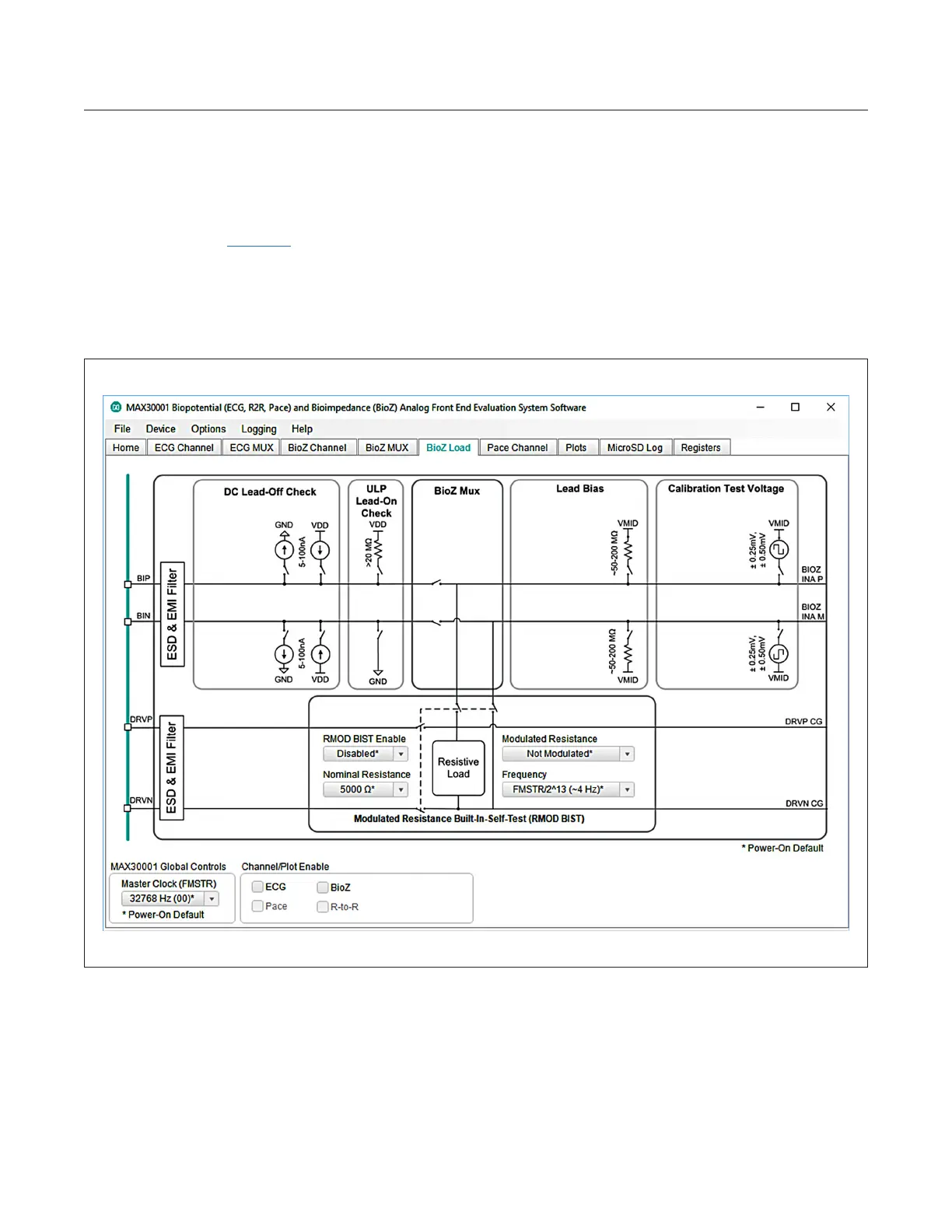 The BioZ Load tab (Figure 10) congures the resistive load used for the self-test of the BioZ channel. The nominal