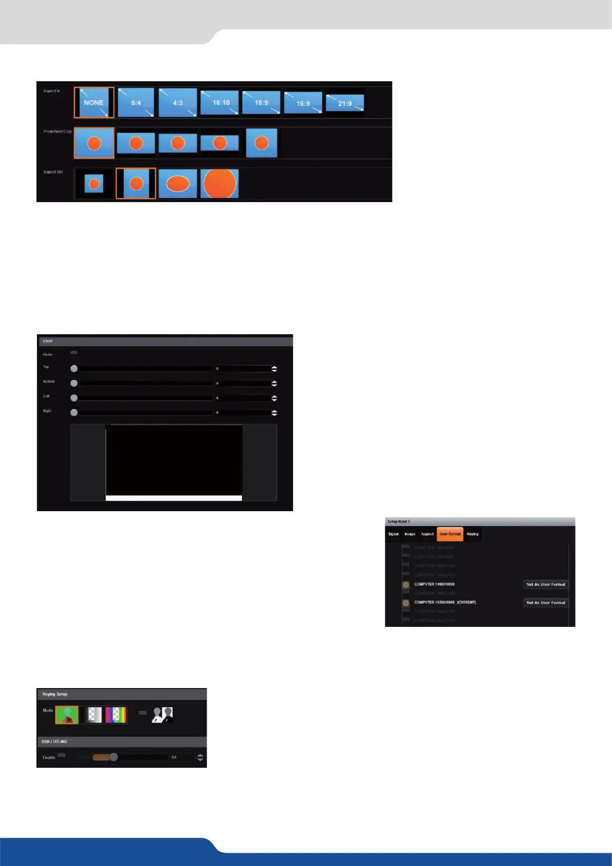 - ASPECT IN: forces a parcular aspect rao for the source. (5:4, 4:3, etc). This seng has no eect when set