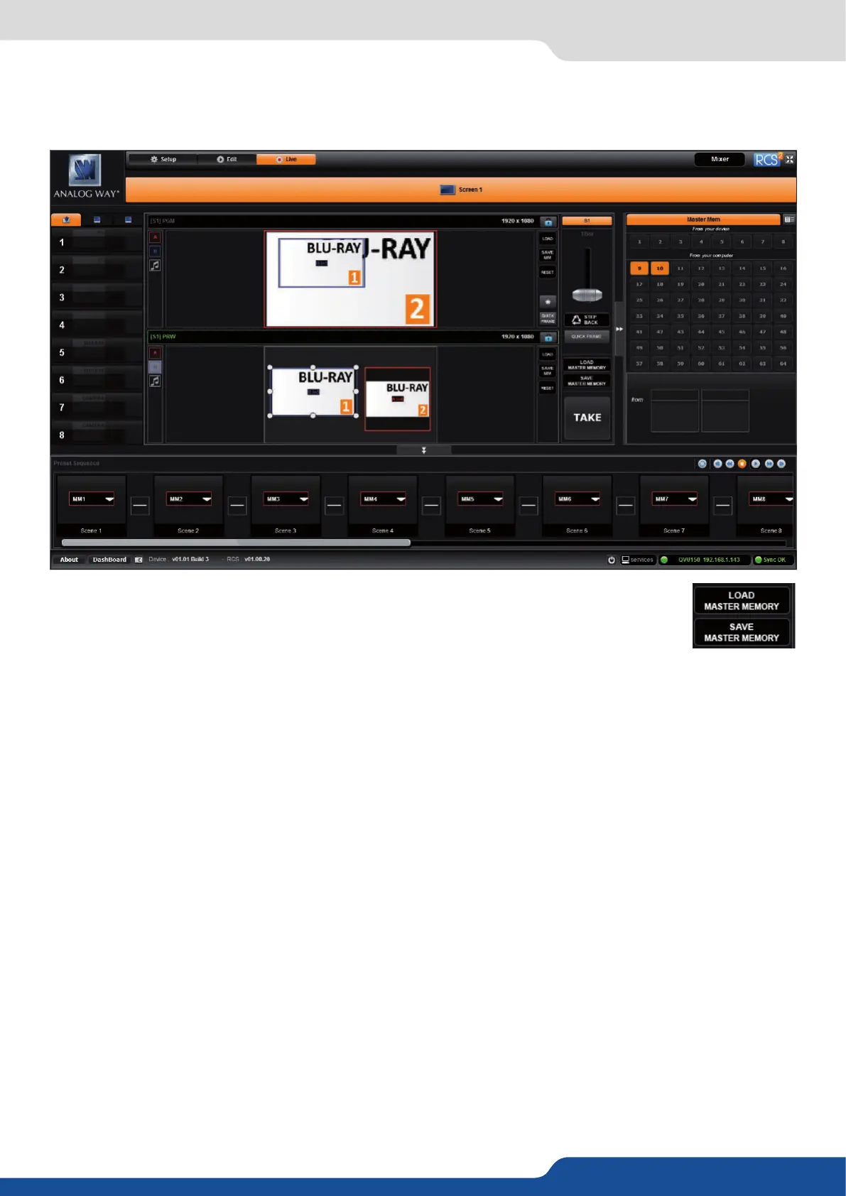 On the right, you will nd all your saved presets under the tab called “MASTER MEMORIES”.