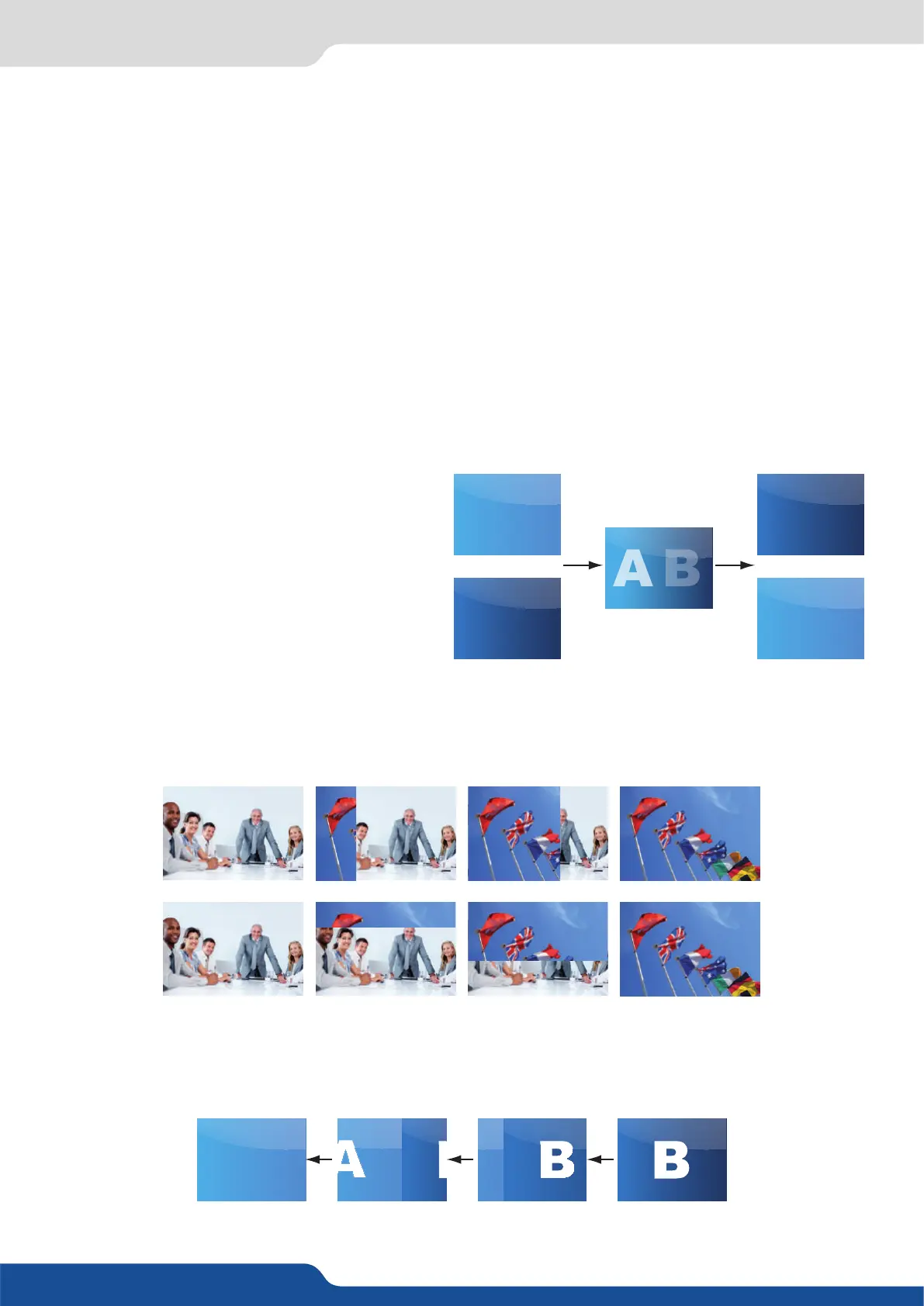 • Numerous wipes can be selected horizontal and vercal, from the center or outside, in circle, Zoom in and