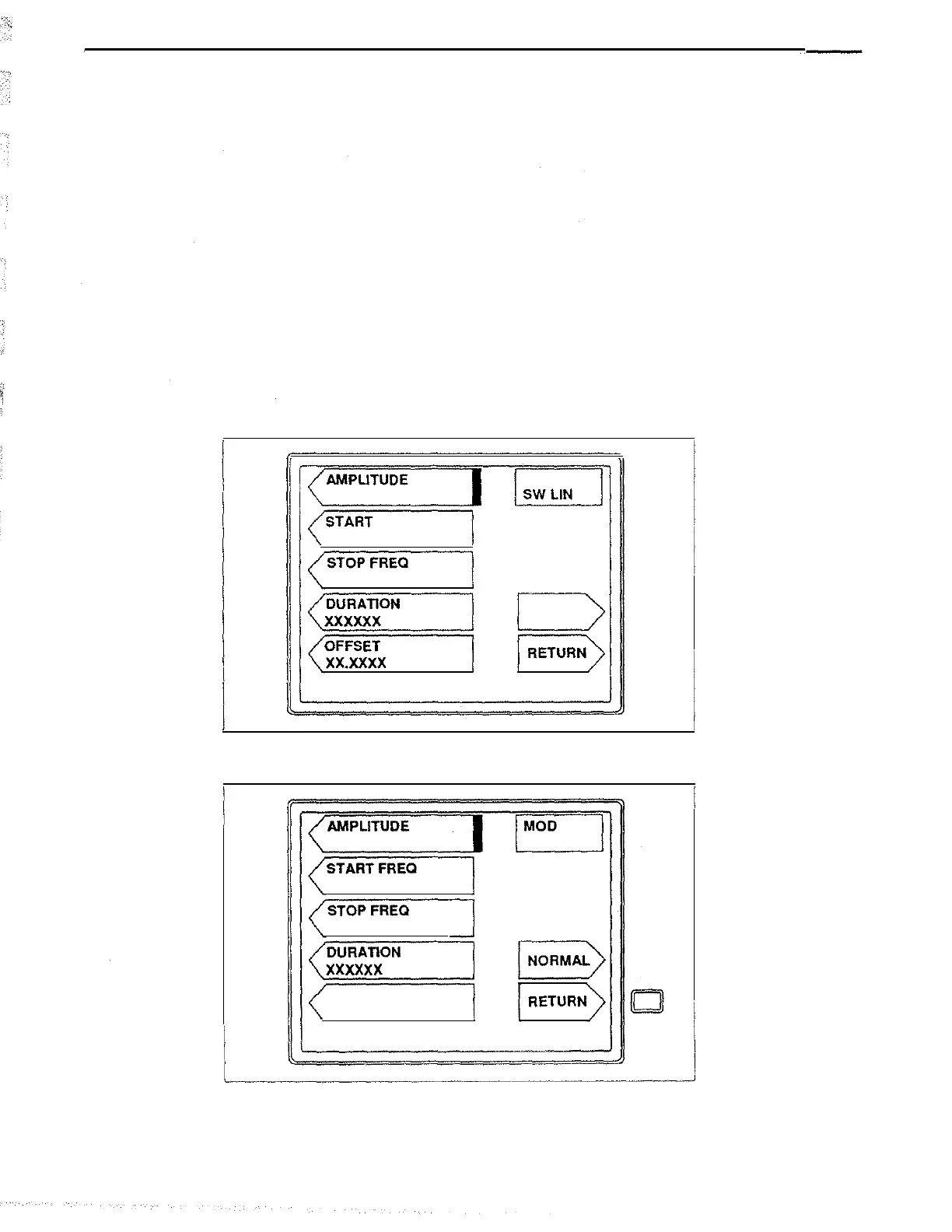 Analogic 2030 - Using the Sweep Function LONG Submenu; Local Operation - Continued; Long Submenu Parameters