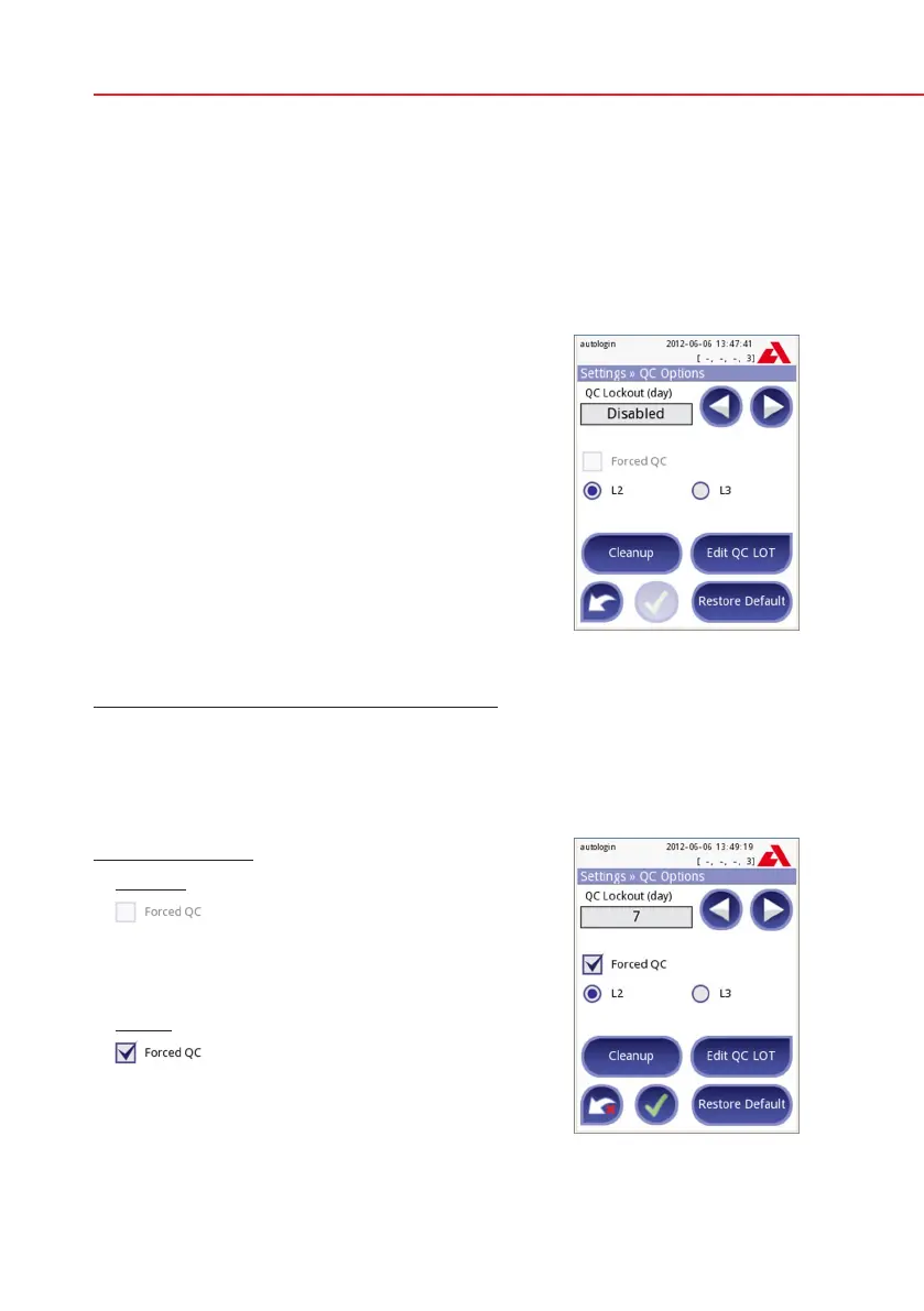 To enable the QC lockout and set the interval: