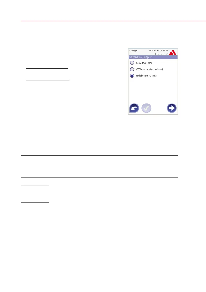 At the Output settings you can define how the Urilyzer 100 will connect to other