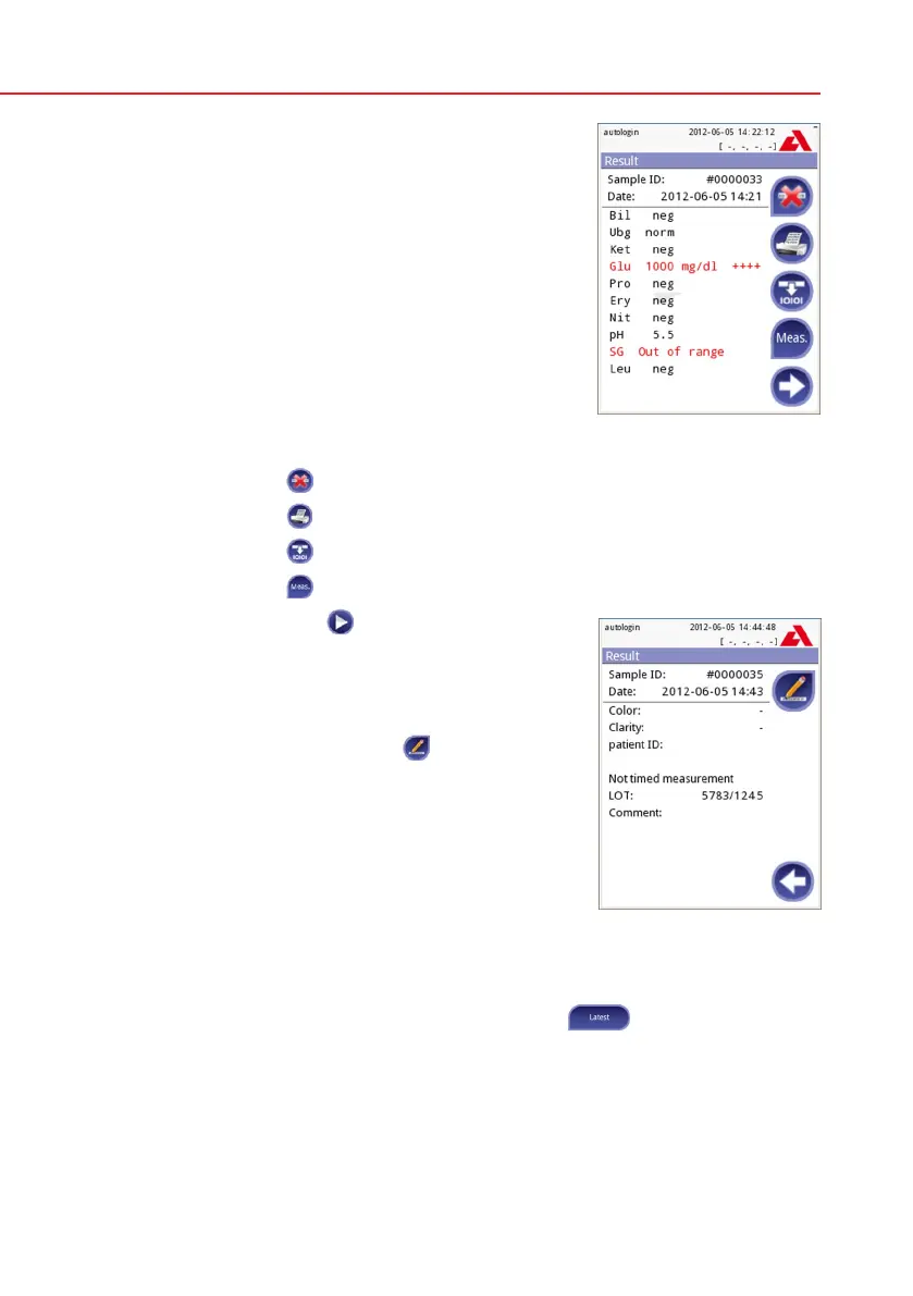 The latest result can be reviewed by selecting the