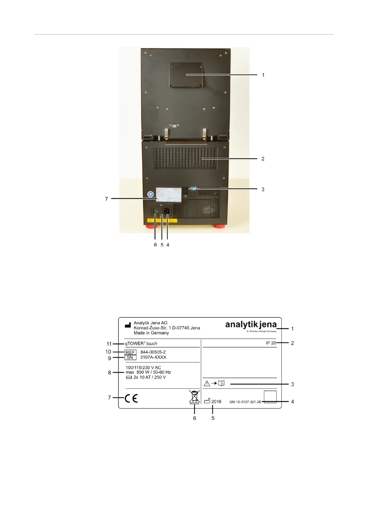 The type plate is also located on the rear of the device. The type plate shows the serial