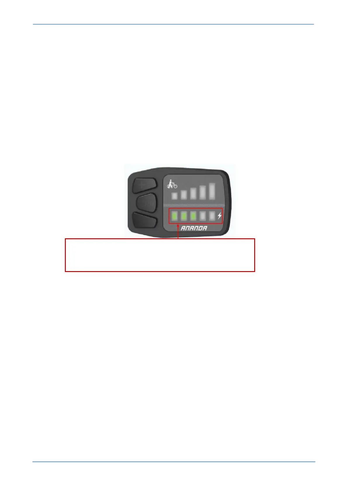 The battery power is displayed in 5 segments. When the battery is fully