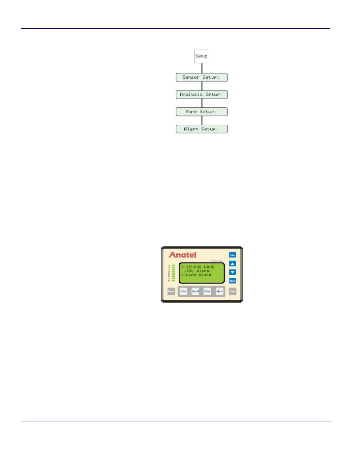 1) With the desired Analyzer selected in any View, press the Setup Key to display its