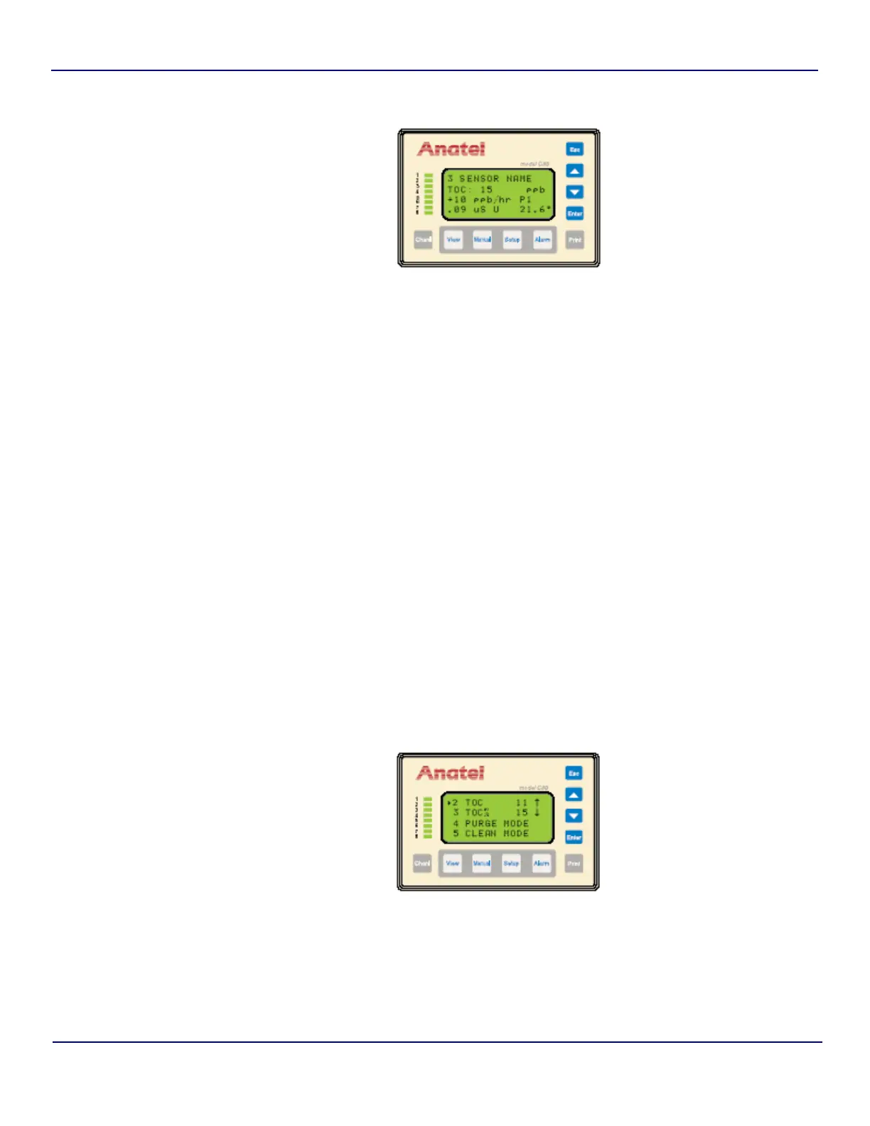 ↓” to indicate the directional trend in TOC level for that Analyzer based on its running average