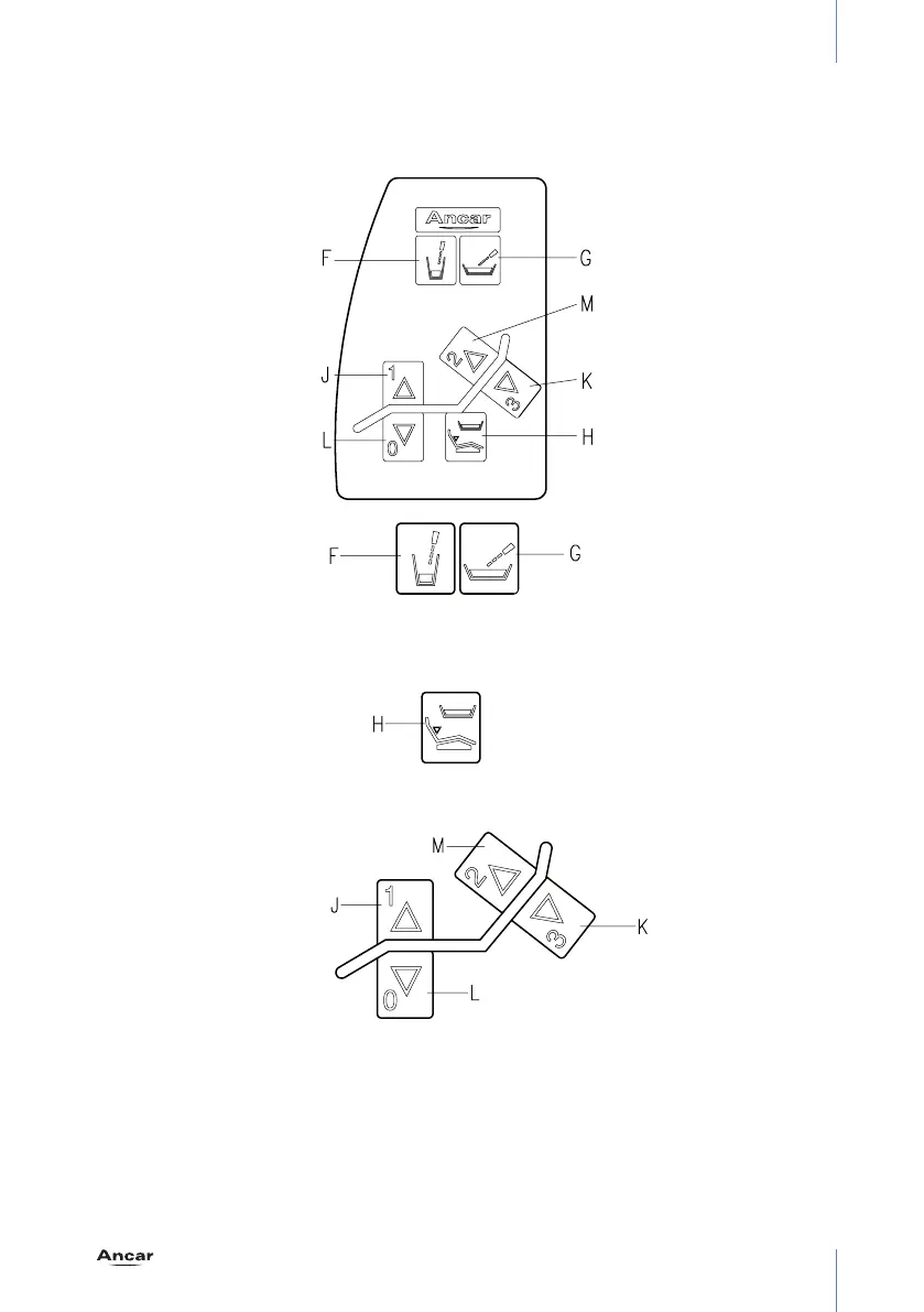 H. Spittoon retorn position. Pressing this once, backrest and seat moves to the spittoon