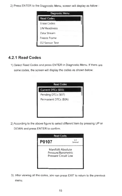 1) Select Read Codes and press ENTER in Diagnostic Menu. If there are
