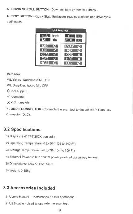 "1/M" BUTTON Quick State Emissions readiness check and dnve cycle