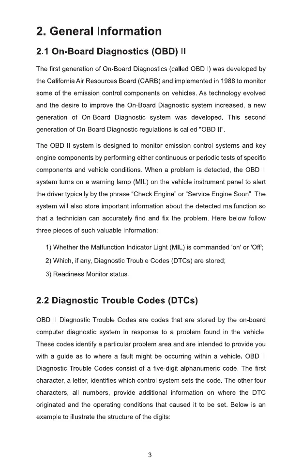 Diagnostic Trouble Codes consist of a five-digit alphanumeric code. The first