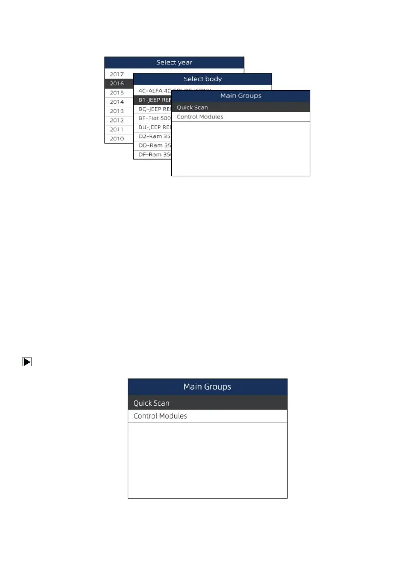 the complete vehicle information is entered and the menu of controller selectiondisplays.