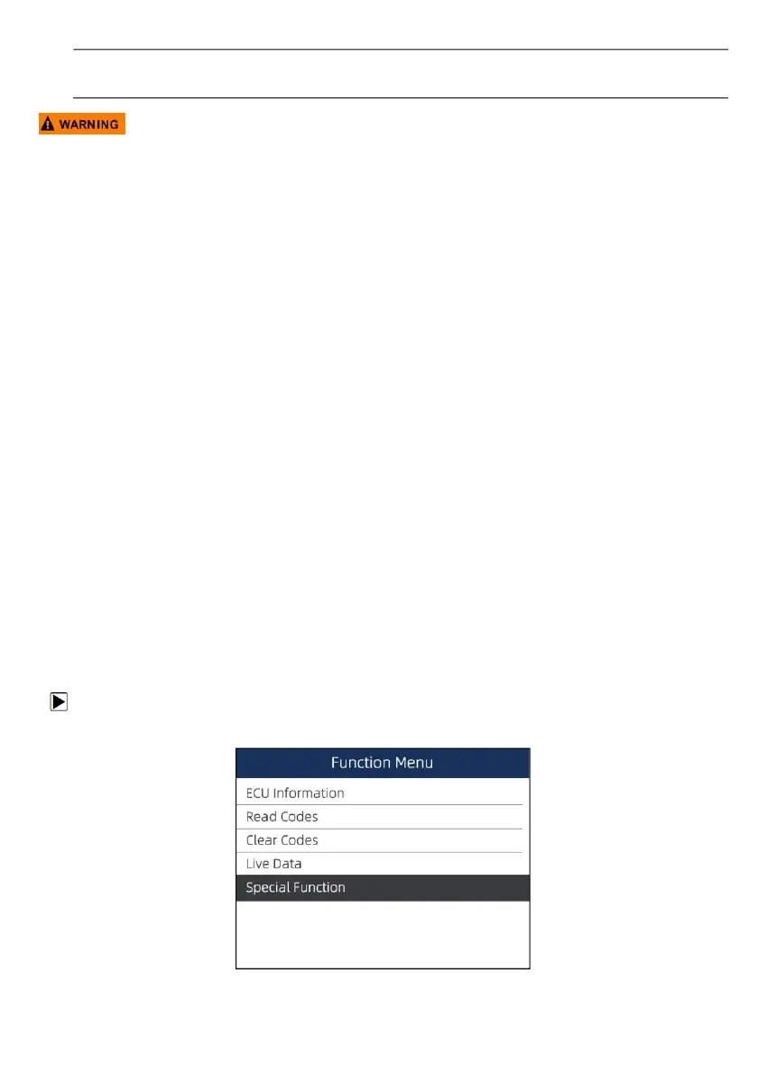 Scroll with the arrow keys to highlight the special function test you want to perform from the menu