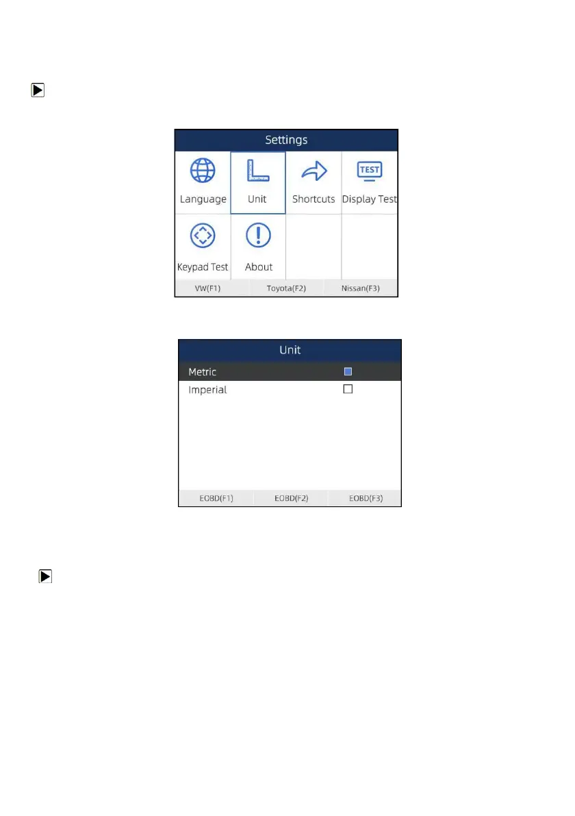 Scroll with the arrow keys to highlight Units from Settings menu and press the