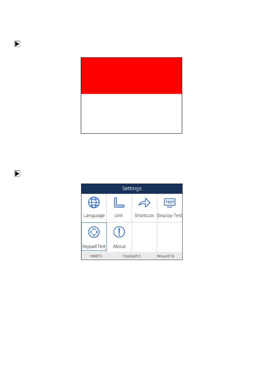 Selecting Display Test option opens a screen that allows you to check the functionality of the