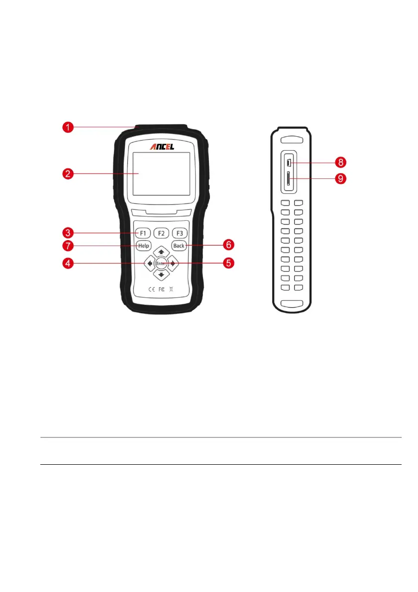 9 TF Card Port - holds the TF memory card for data backup and software update.