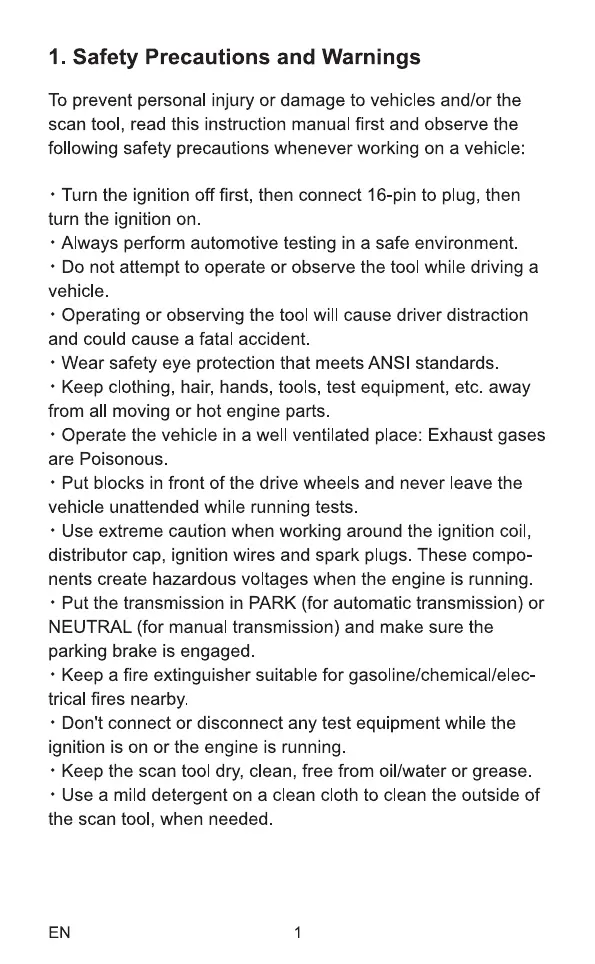 scan tool, read this instruction manual first and observe the