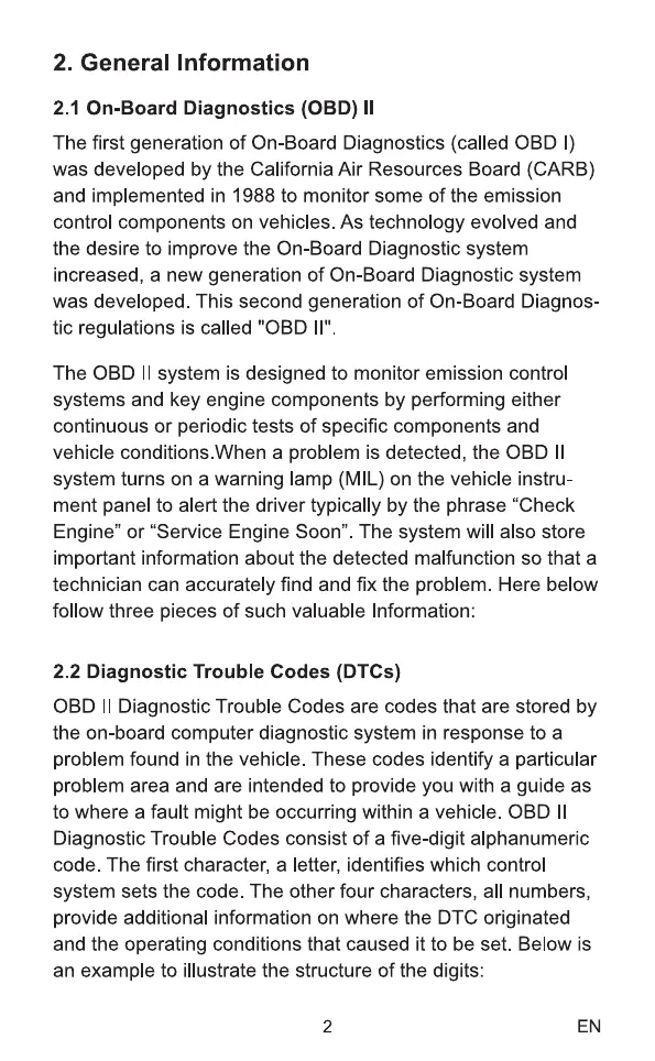 Diagnostic Trouble Codes consist of a five-digit alphanumeric