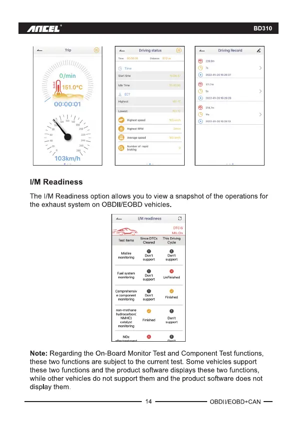 Note: Regarding the On-Board Monitor Test and Component Test functions,