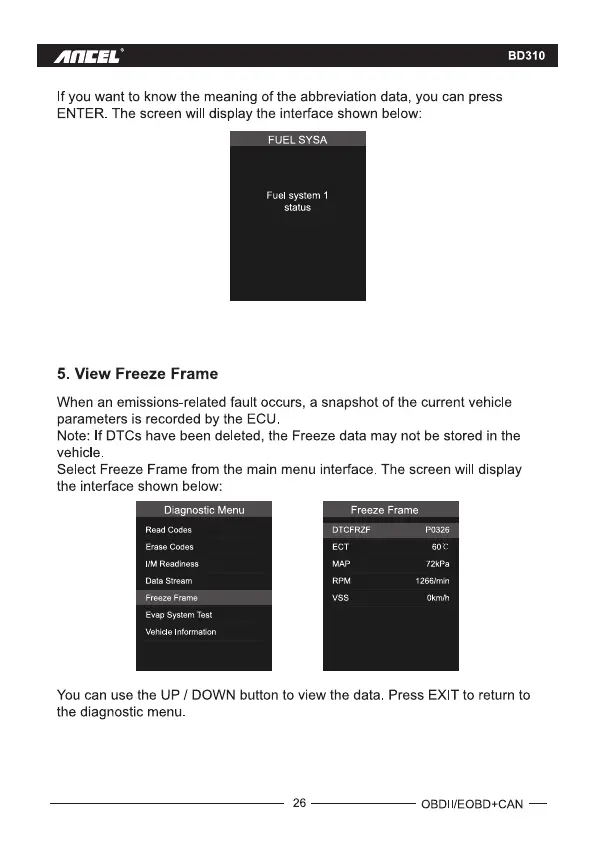 Note: If DTCs have been deleted, the Freeze data may not be stored in the
