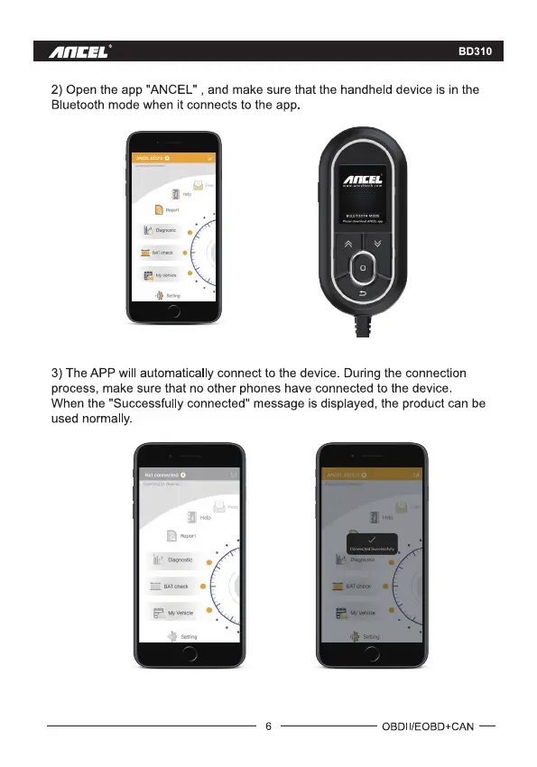 2) Open the app "ANCEL" , and make sure that the handheld device is in the