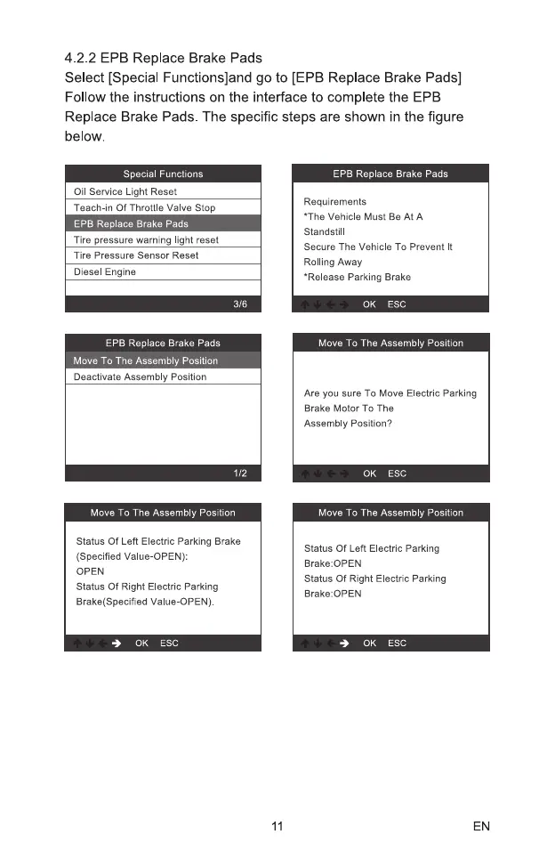 Select [Special Functions]and go to [EPB Replace Brake Pads]