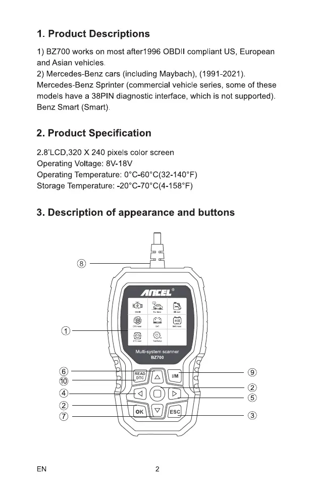 I) BZ700 works on most after 1996 OBDII compliant US, European