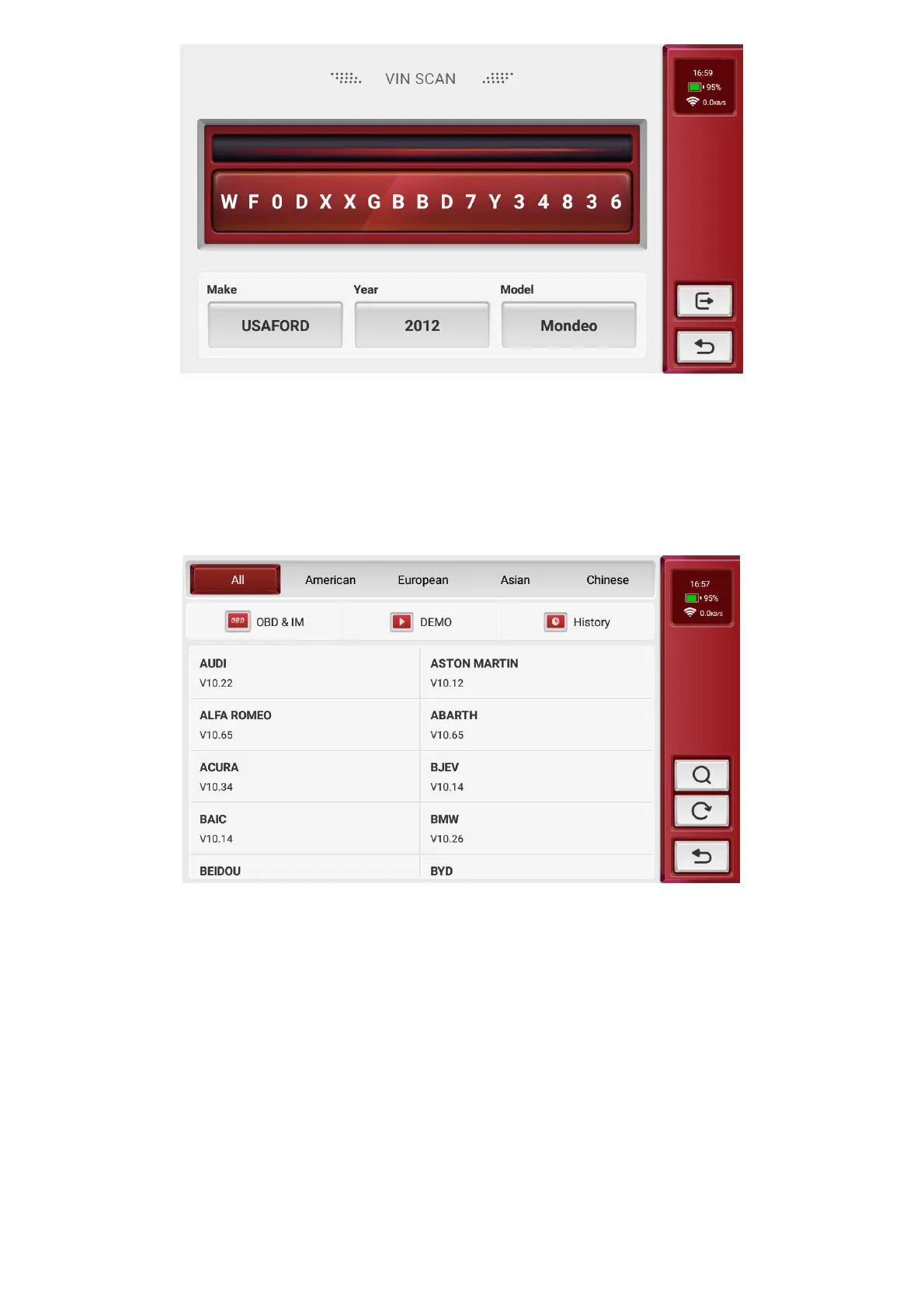 In this menu, directly select the corresponding vehicle brand, year, and model. You can then perform a full vehicle