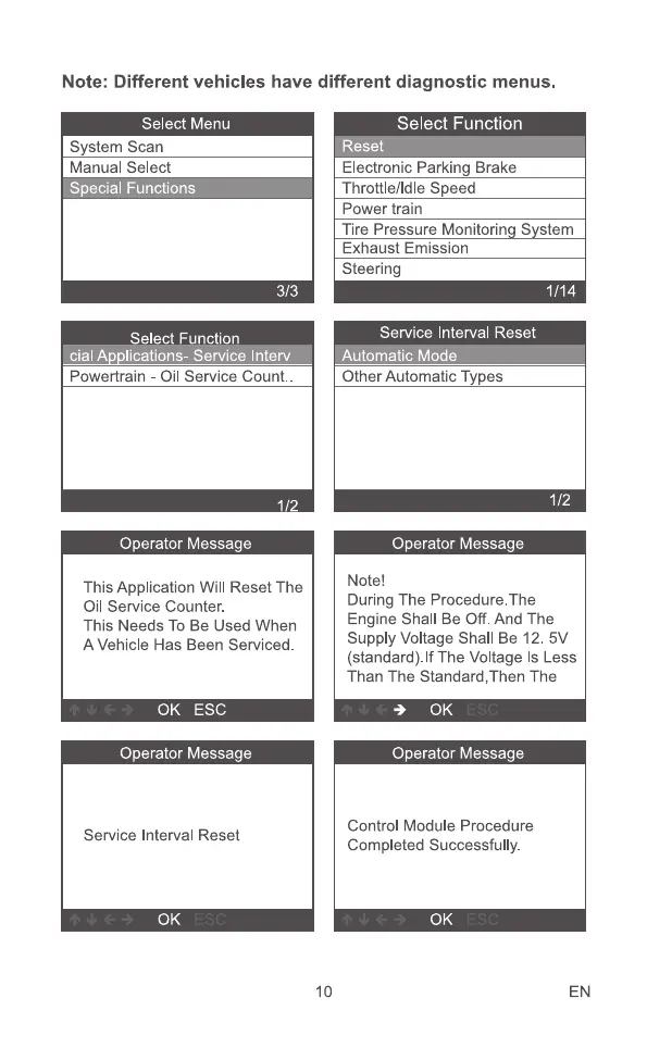 Note: Different vehicles have different diagnostic menus.