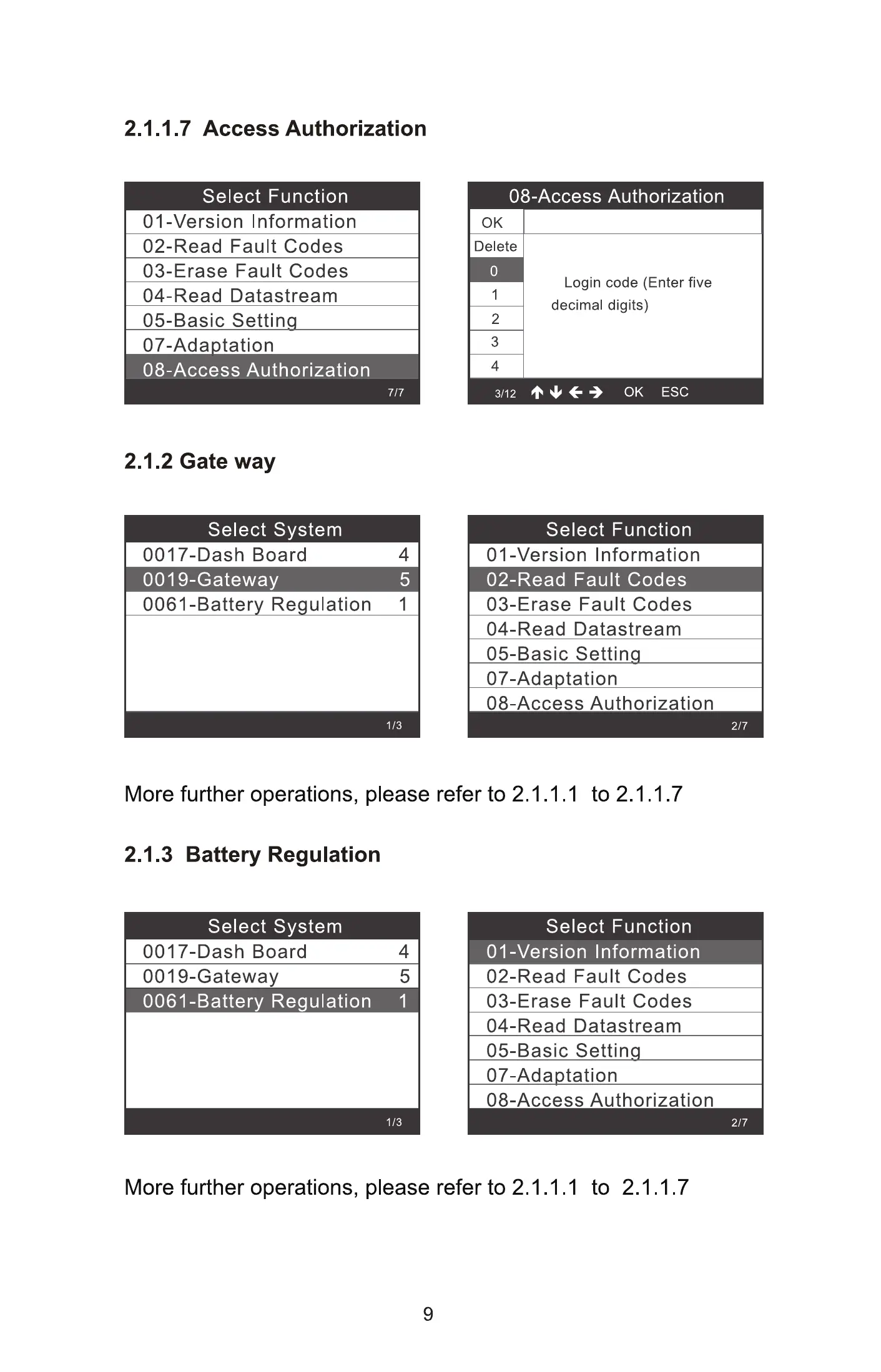 More further operations, please refer to 2.1 .1.1 to 2.1.1.7