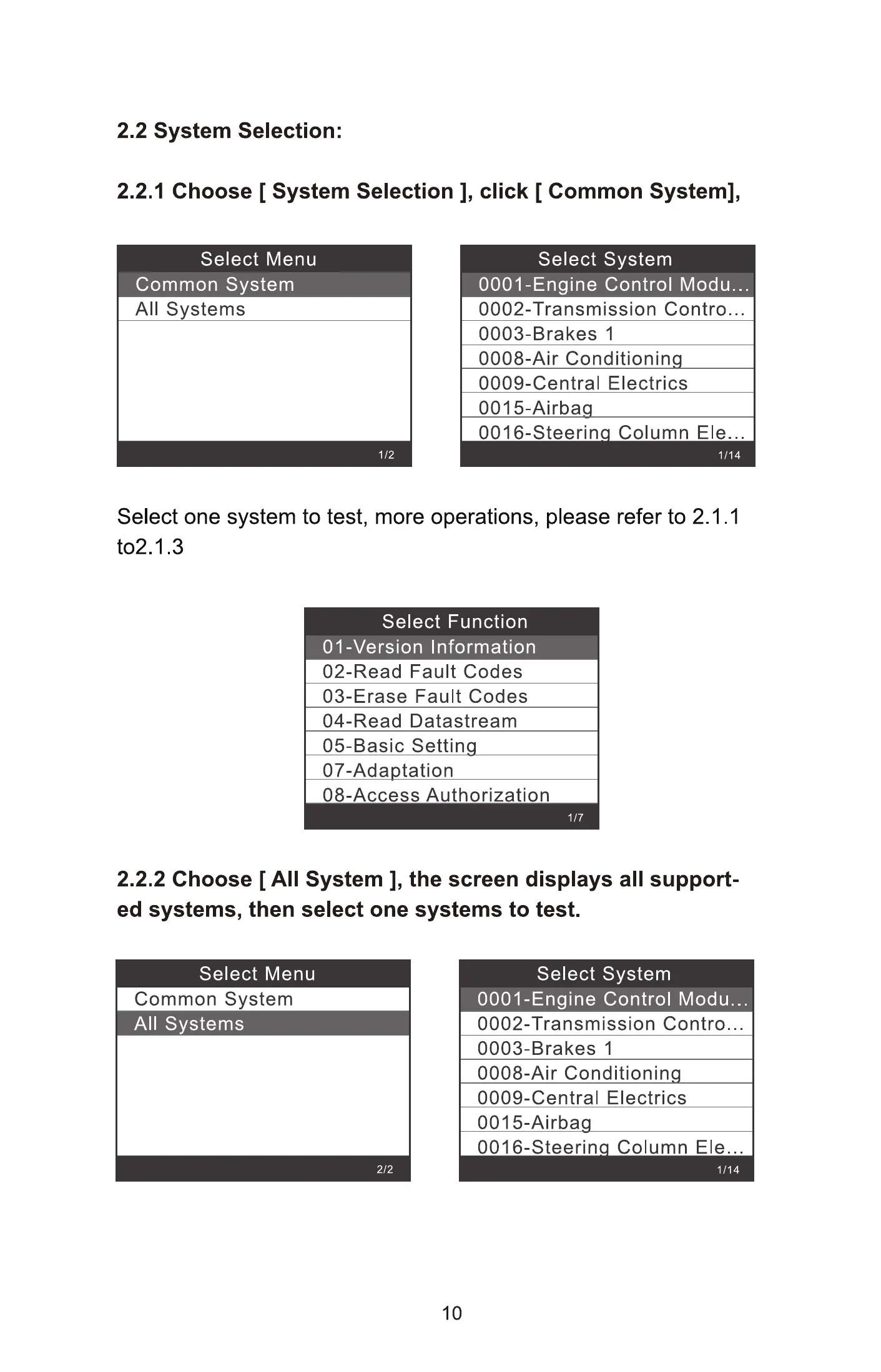2.2.1 Choose [ System Selection l, click [ Common System],