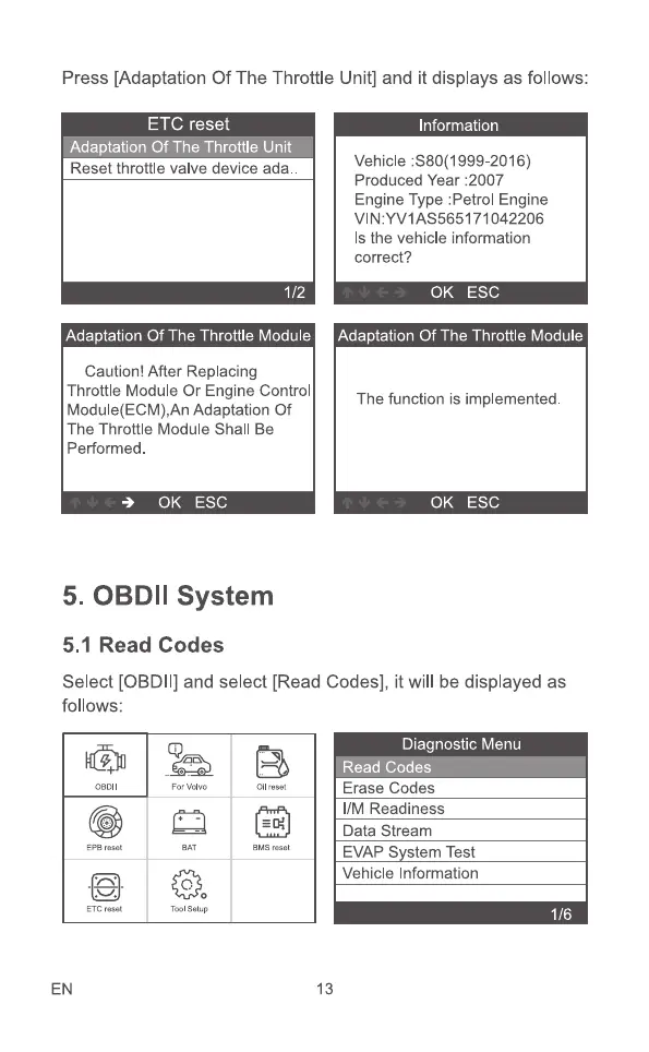 Press [Adaptation Of The Throttle Unit] and it displays as follows: