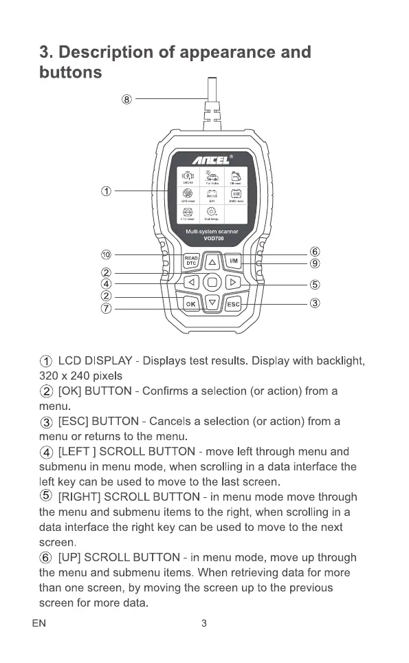 0 [UP] SCROLL BUTTON - in menu mode, move up through