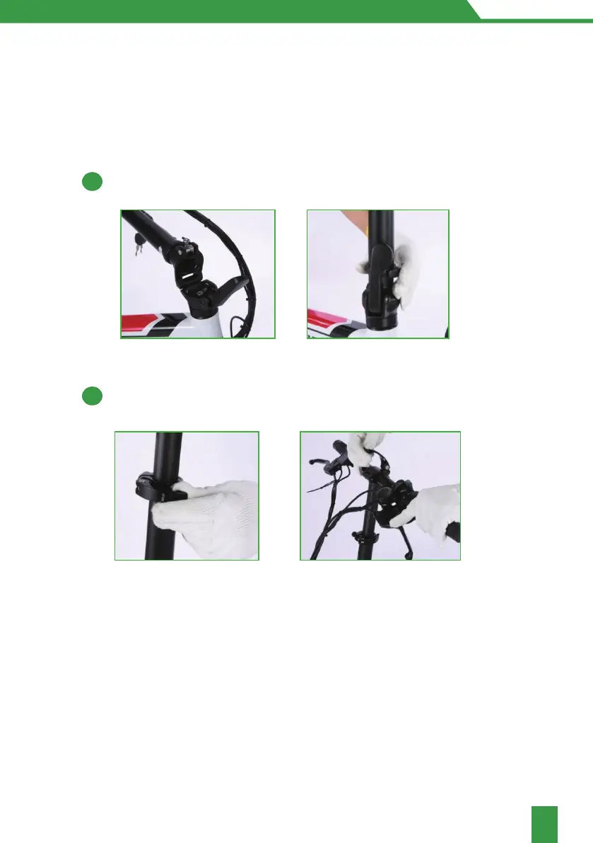 Install the handlebar into the folding stem and fasten the buckle.