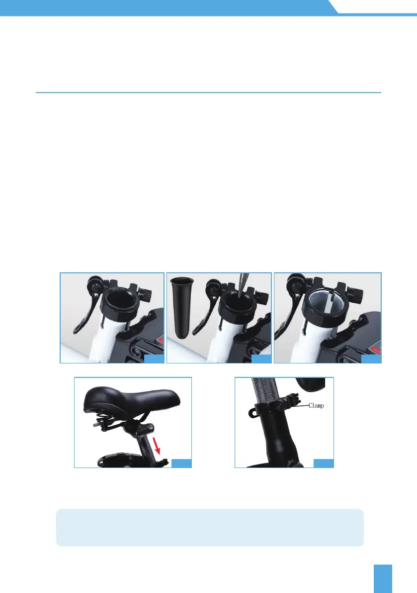 Adjust the saddle height by releasing the clamp and tightening when at the correct