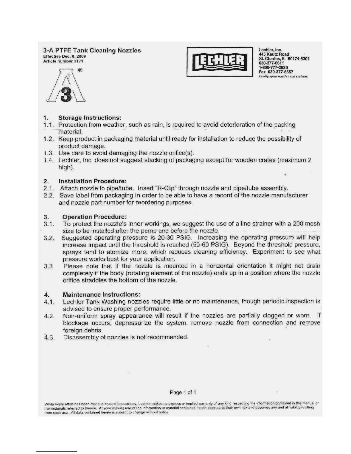 Anco Equipment Batch Pasteurizer - Spray Ball Maintenance and Technical Information