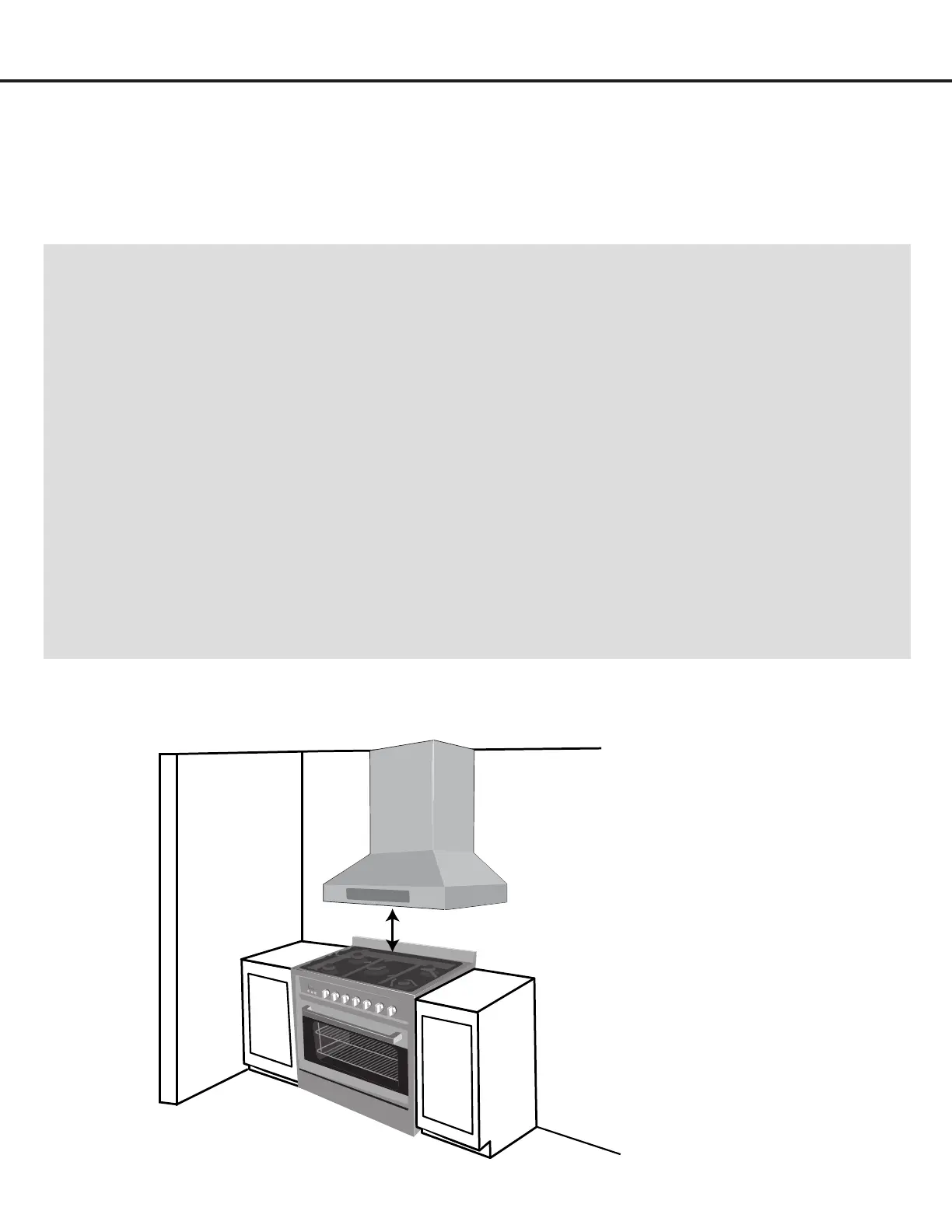 stove top and the bottom of range hood. 30” minimum