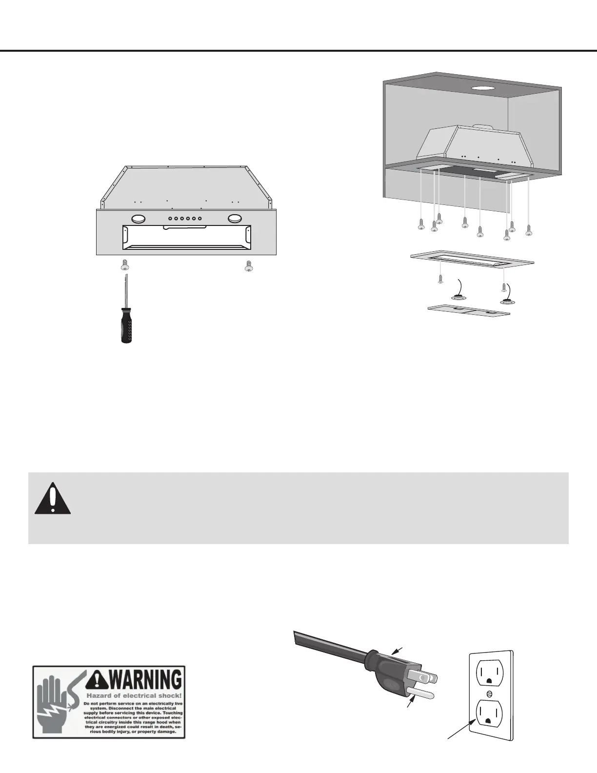 Risk of electrical shock. This range hood must be properly grounded. Make sure this is done by a