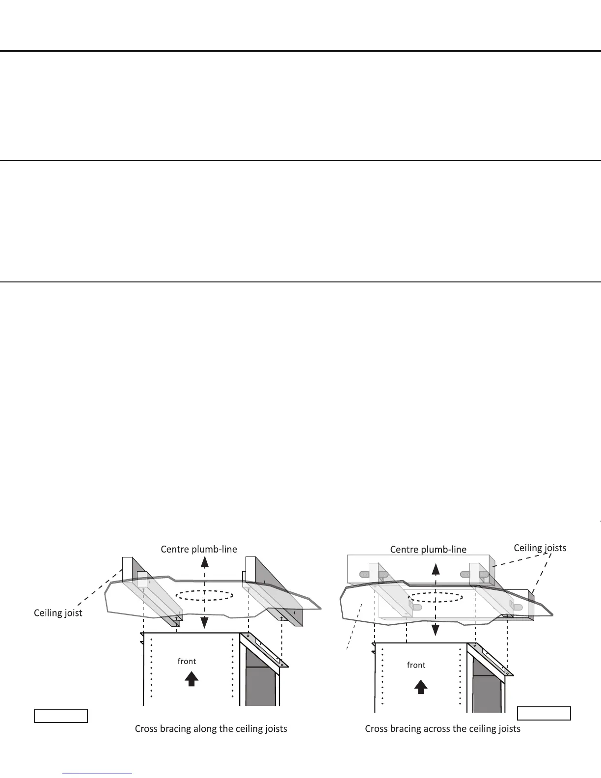 • In the ceiling, install cross-braces between the ceiling joists (See Figures 1 and 2)