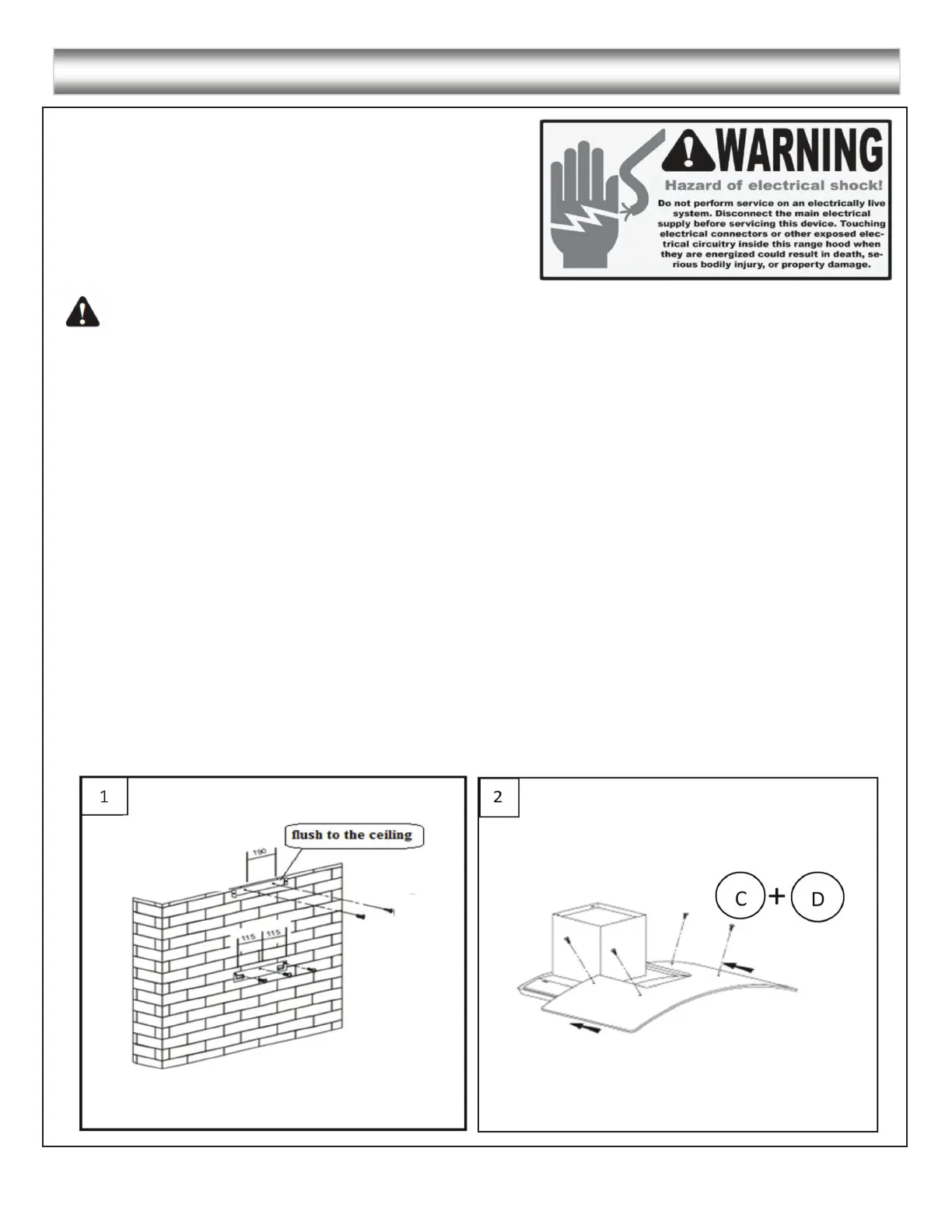 • Place the glass piece over the range hood and tighten using the 4 designated screws, C & D. (See Figure # 2)