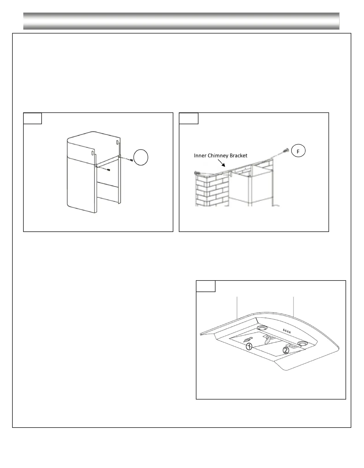 • Use 2 screws (requires screw F) to fix the two chimneys together with the lower chimney bracket,